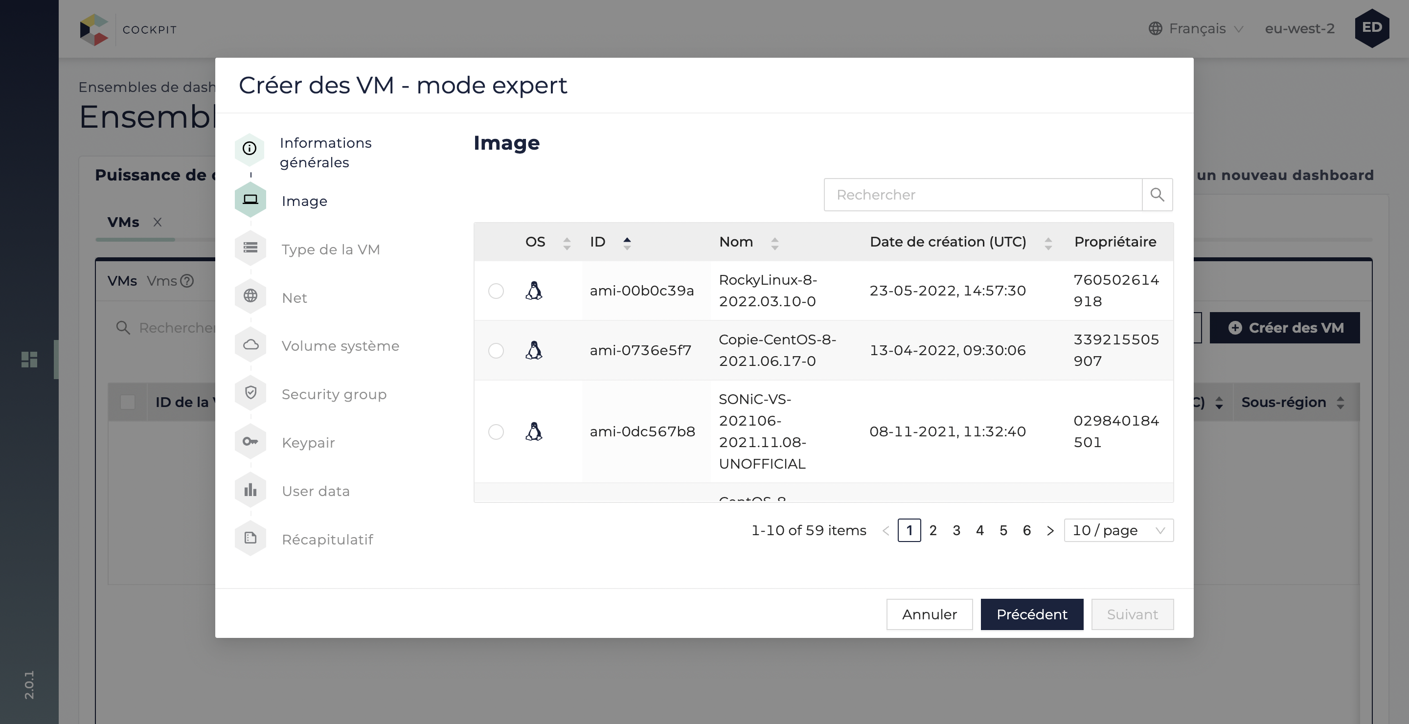 Déployez en quelques clics les ressources Cloud dont vous avez besoin pour répondre à vos cas d’usages. La nouvelle interface de Cockpit a été pensée pour vous faire gagner du temps en optimisant les étapes de déploiement.